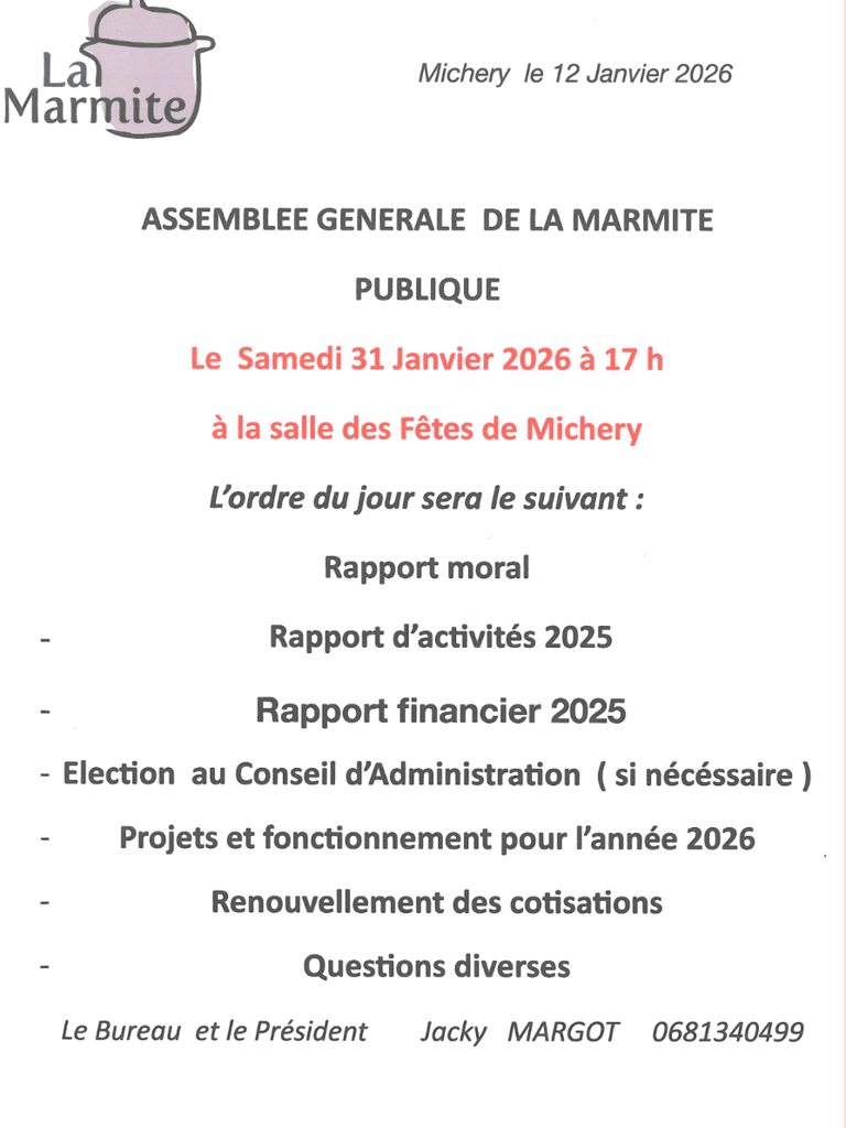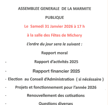 L’association La Marmite a le plaisir d’inviter ses adhérents et le public à son assemblée générale.